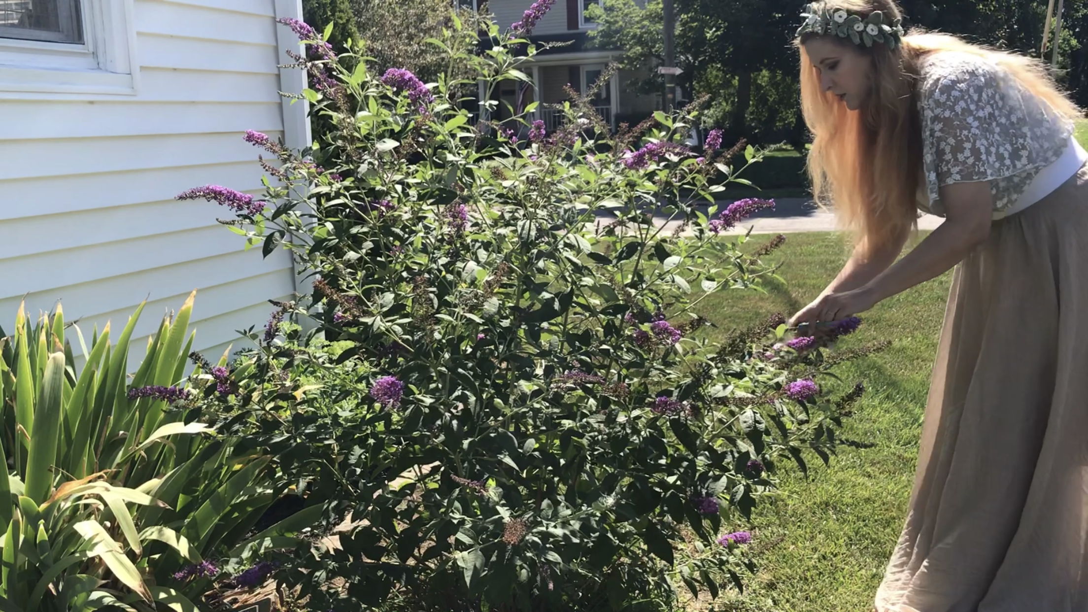 Next I gathered blooms and branches from my Buddleia, or butterfly bush.