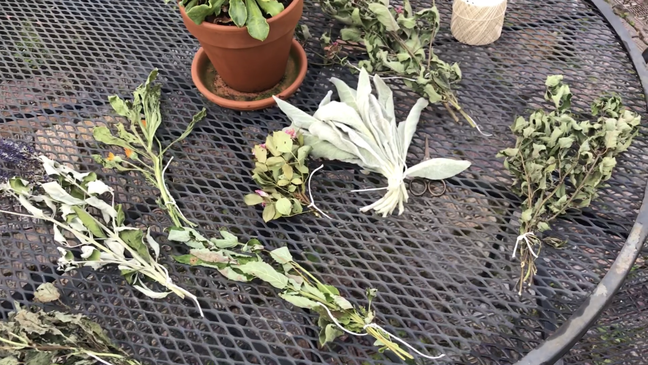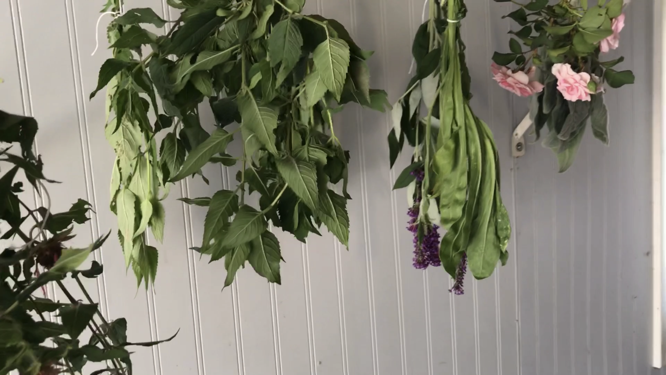 After 36 hours I took down the bunches of plants. As you can see, some of them dried out much faster than others. The lamb’s ear was still pretty much just as pliable.